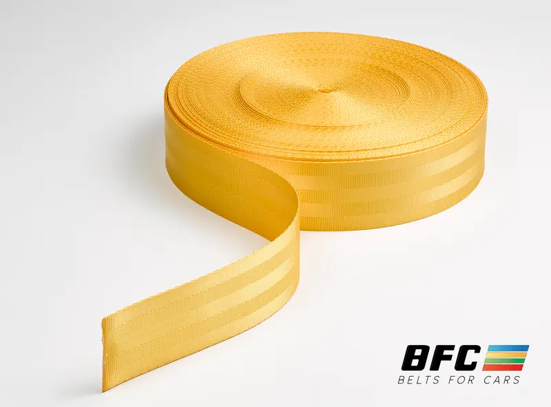 La cinta amarilla Standard de BFC es ideal para quienes buscan renovar o personalizar los cinturones de seguridad de su coche con un toque de estilo.
