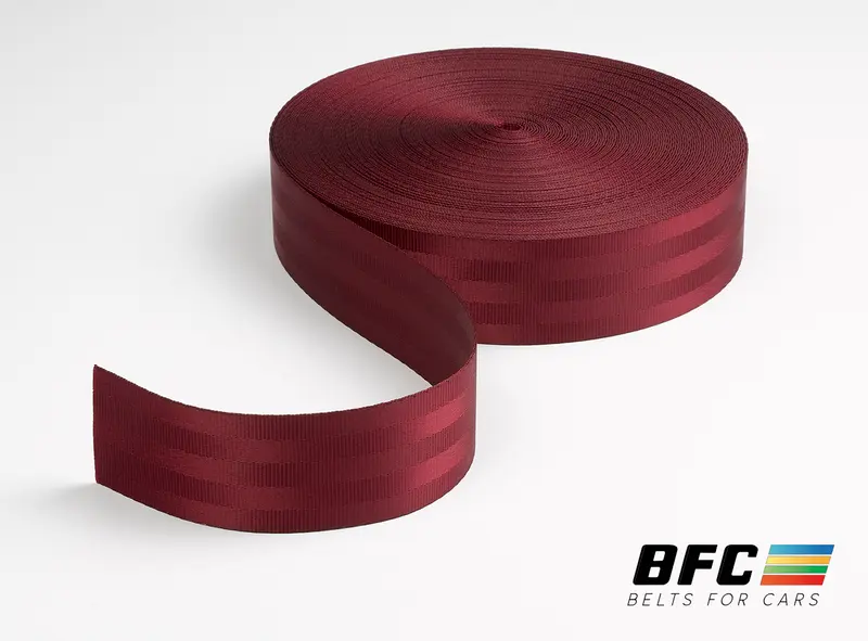 La cinta granate Standard de BFC es ideal para quienes buscan renovar o personalizar los cinturones de seguridad de su coche con un toque de estilo.