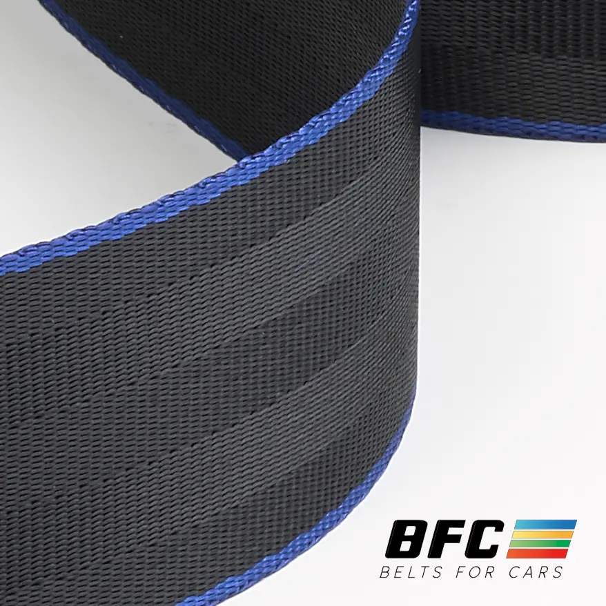 La cinta negra/azul Standard de BFC es ideal para quienes buscan renovar o personalizar los cinturones de seguridad de su coche con un toque de estilo.
